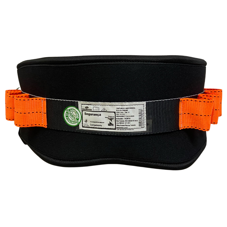 Cinto de posicionamentoem Facintos Els em fita poliéster, acolchoado na cintura, com 2 argolas em "D" localizadas na lateral do cinturão,porta ferramentas e fivela de engate rápido.Este cinto deve ser combinado junto a um talabarte de posicionamento para garantir total segurança do usuário contra risco de queda para esse tipo de serviço. Cinturão de segurança tipo abdominal, confeccionado em fita de poliéster 45 mm, com uma fivela de aço para ajustes e duas argolas de aço para posicionamento. O cinturão é utilizado com os seguintes talabartes: CERE FR FR; PAROI FR.