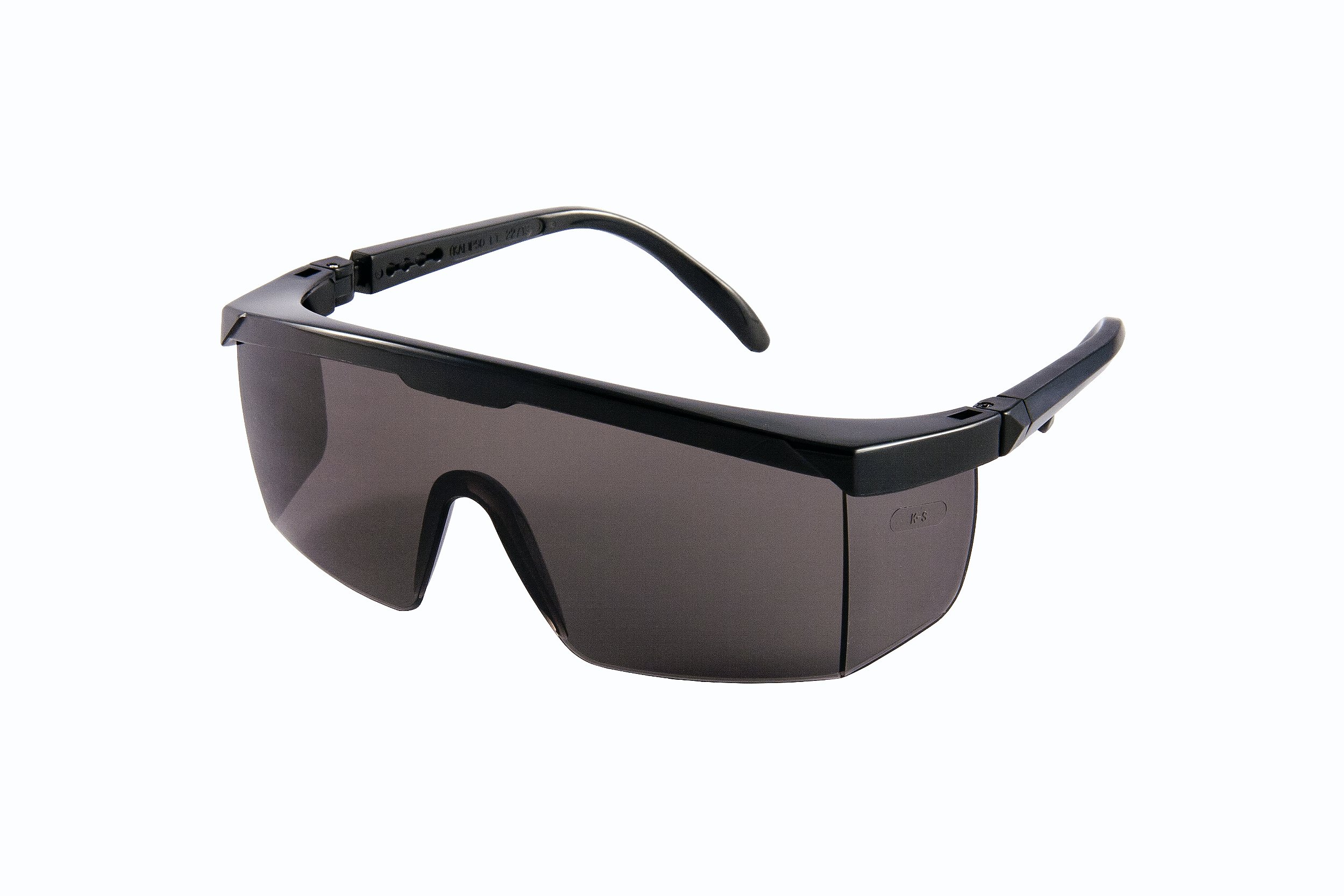 Óculos de segurança, constituídos de um arco de material plástico preto com um pino central e uma fenda em cada extremidade, utilizada para o encaixe de uma lente em policarbonato incolor ou cinza (fume), com apoio nasal e proteção lateral injetada do mesmo material, com um orifício na parte frontal superior e uma fenda em cada extremidade para o encaixe no arco. O arco possui proteção superior nas bordas. As hastes são confeccionadas do mesmo material do arco e são compostas de duas peças: uma semi-haste vazada com uma das extremidades fixada ao arco por meio de parafuso metálico e outra semi-haste com um pino plástico em uma das extremidades e que se encaixa na outra extremidade da semi-haste anterior e que permite o ajuste do tamanho.